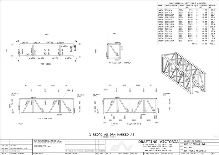I would just like to say that I have used Drafting Victoria for Precast Concrete Panel shop drawings over the past 8 years. John and his team are very professional and easy to work with, Resolving day to day issues are simple as they have a lot of experience which makes our jobs run smoothly.